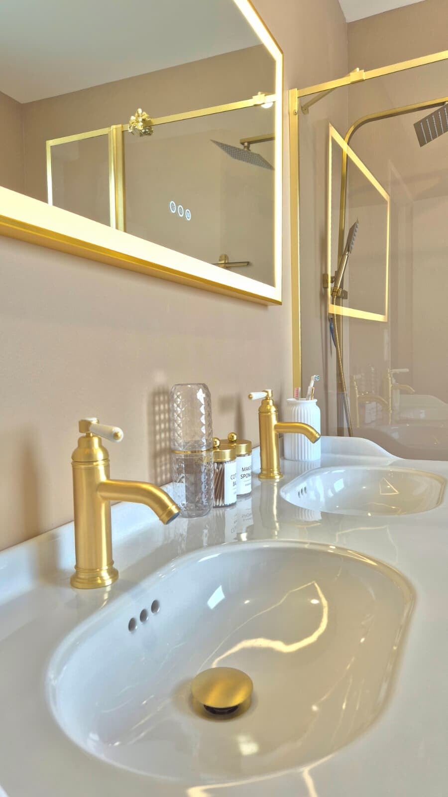 Réalisation ci-contre d'un Solidro, béton ciré base acrylique totalement résistant à l'eau. Applicable dans une salle de bain, sur le mur, sol ou faïence.
